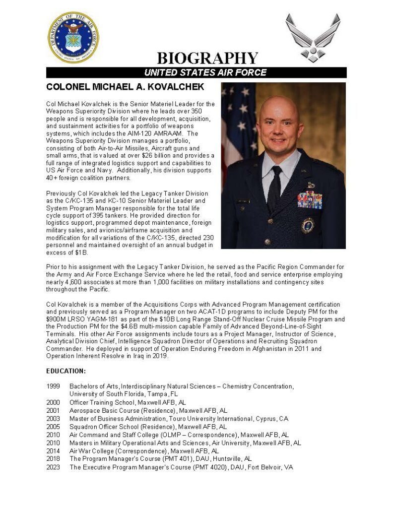 COLONEL MICHAEL A. KOVALCHEK